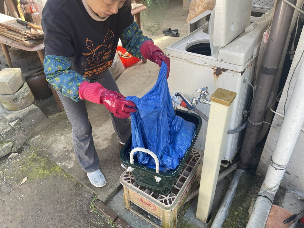 ②熊爺と一年間、藍染めの一連の工程に挑戦しながら藍染の技術を学べます。