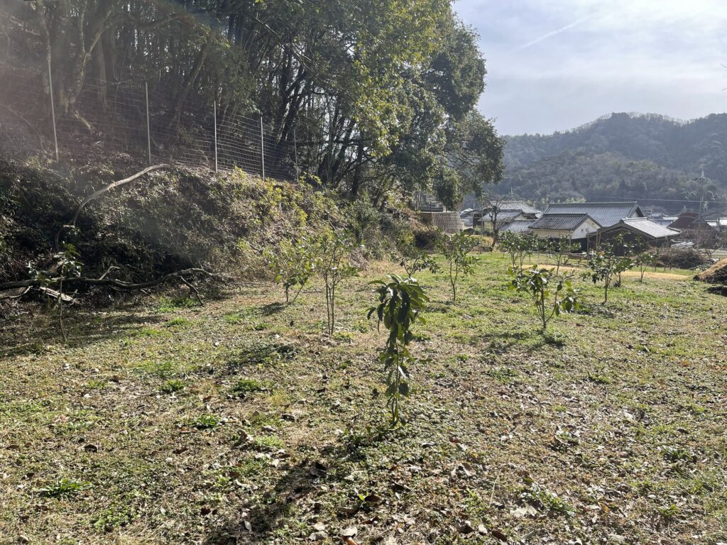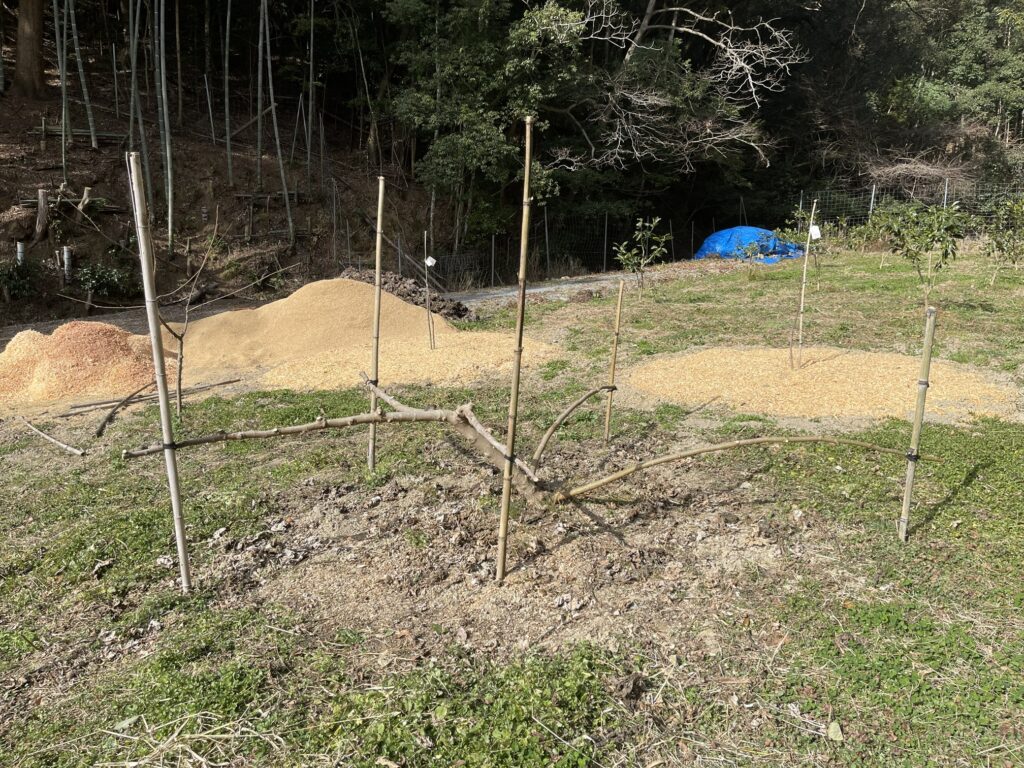 果樹の剪定を行いました。3年目に入りそろそろ収穫が楽しみです