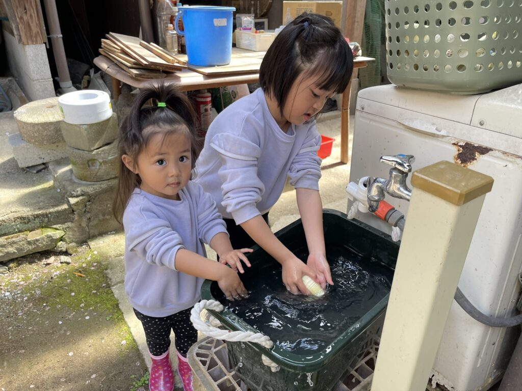 母屋に戻って、井戸水で、姉妹できれいに洗います